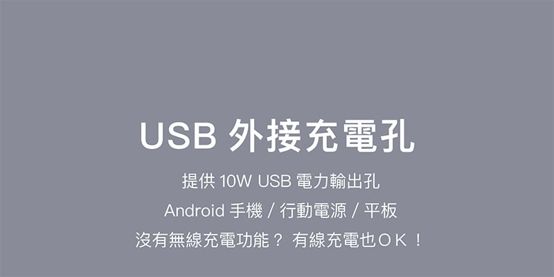 .額外USB充電孔,10W 電力輸出,可再充一支手機/行動電源/平板