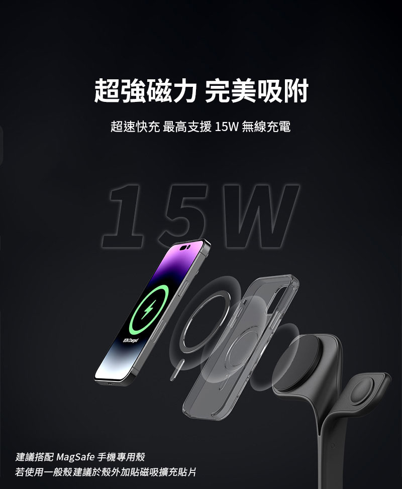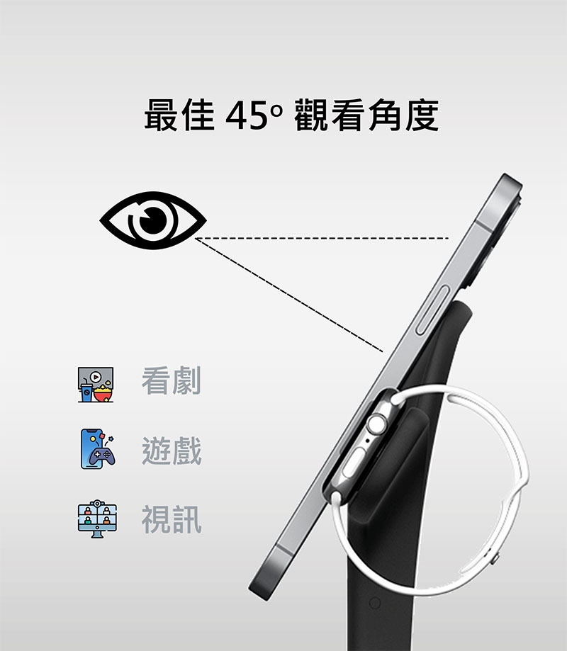 .支援iPhone 16~12系列MagSafe功能,橫放豎放皆可,遊戲看劇邊充電!