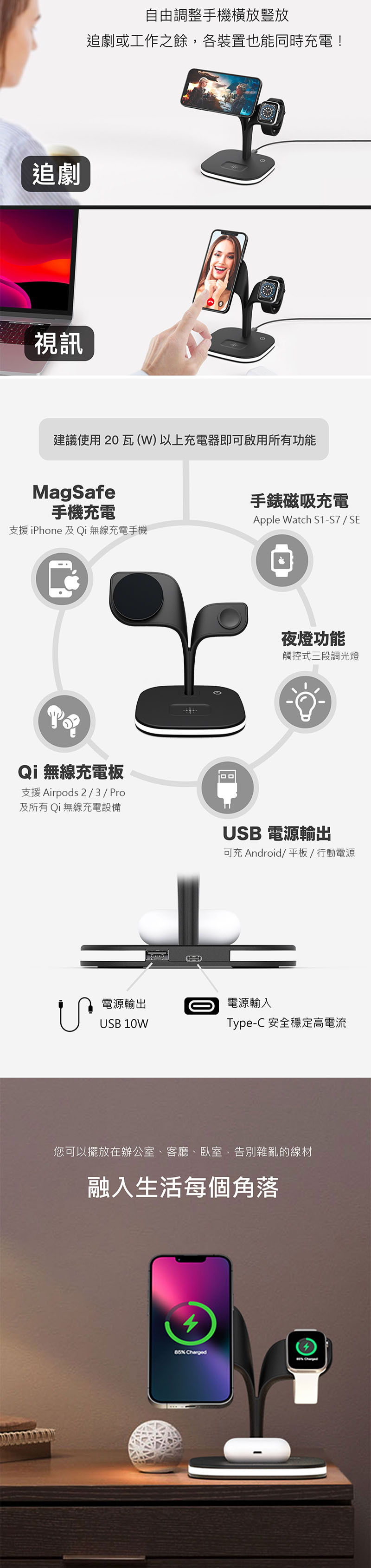 .支援Apple Watch 全系列磁吸充電